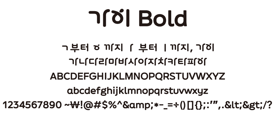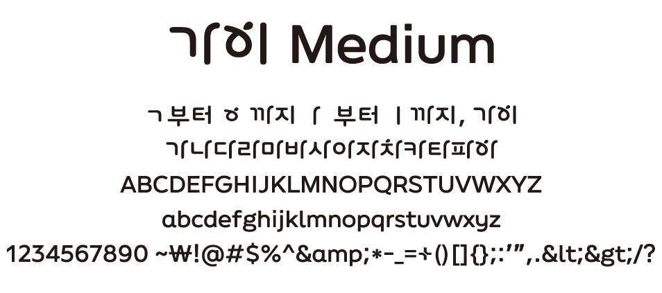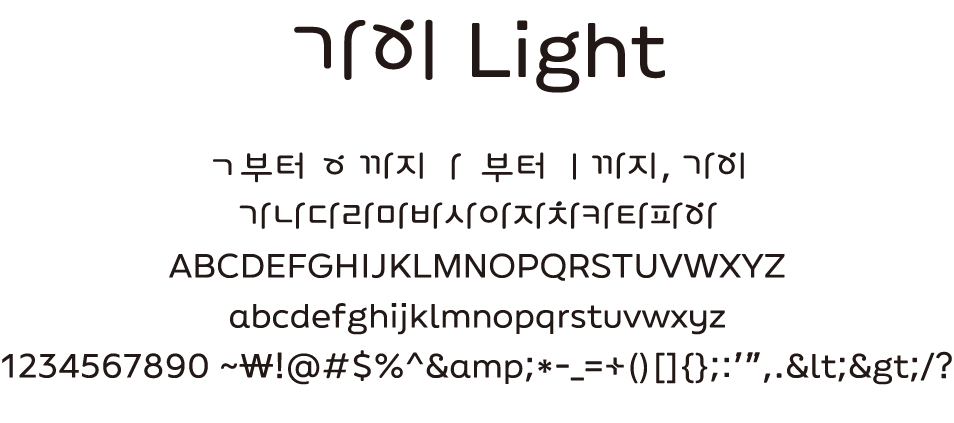 가히는 Light, Medium, Bold 세가지 굵기로 제작되었습니다.